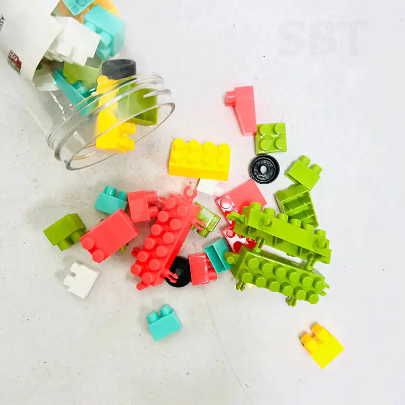 - تخزين سهل: جميع القطع محفوظة بعناية في زجاجة بلاستيكية كبيرة.