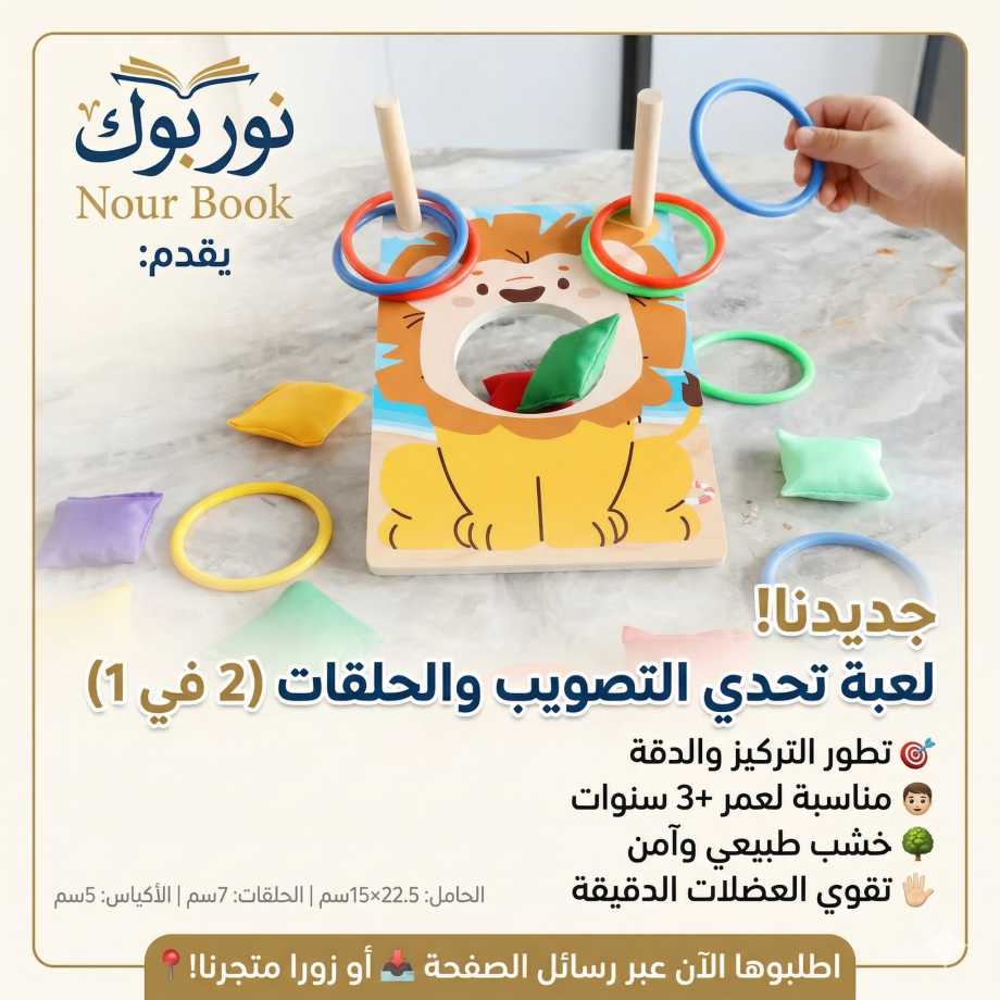 🦁 لعبة تحدي التصويب – حلقات + أكياس رمل