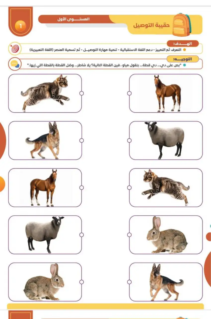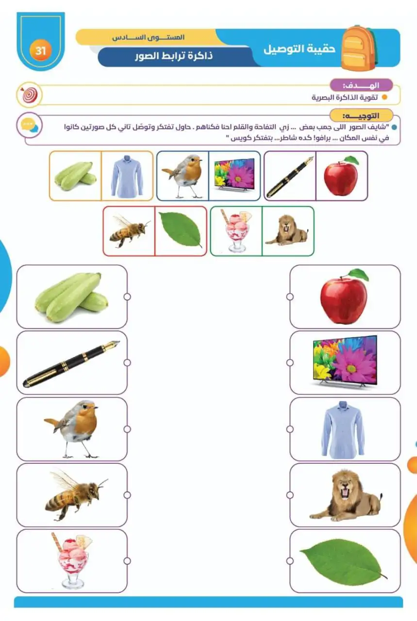 يوصل الحيوان بالحيوان، الظل بالشكل، الأداة بوظيفتها… وهكذا