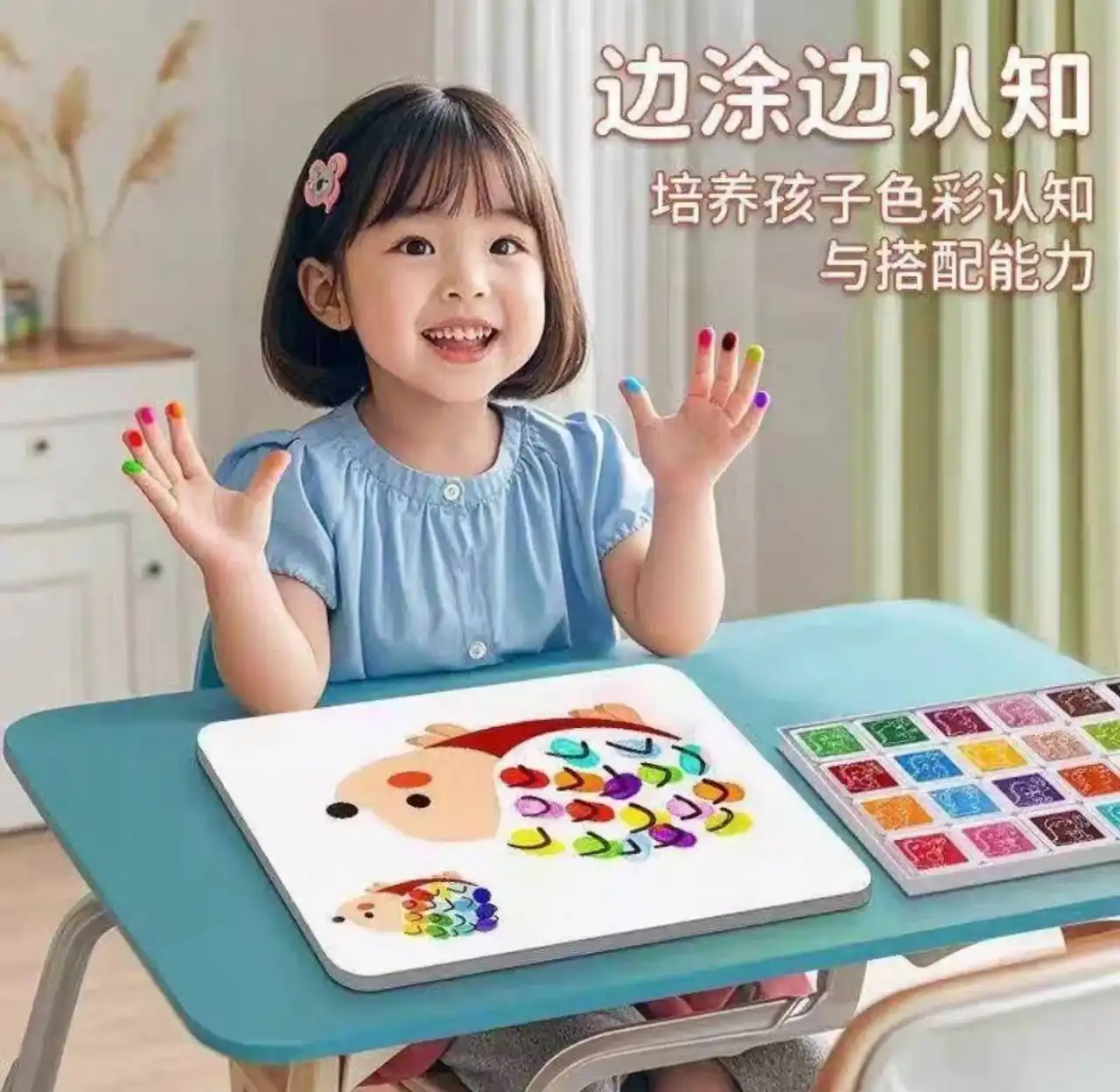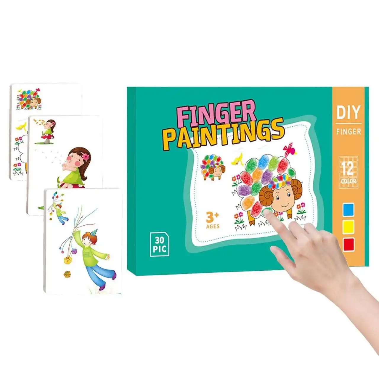 لعبة الرسم بالأصابع للأطفال من عمر سنة فأكثر مع 30 كارت مقوّى و12 لون آمن وسهل التنظيف؛ تنمّي الإبداع والتركيز وتخلي أول تجربة تلوين ممتعة وحسية