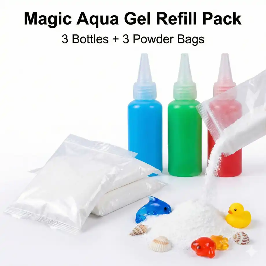 ✅ 3 أكياس "البودرة السحرية" (Magic Powder): دي أهم حاجة! لأن من غيرها الجل مش هيمسك في الميه. (كمية تكفيكِ لمرات لعب كتييير). 💧✨