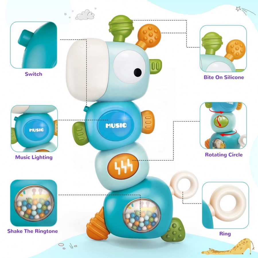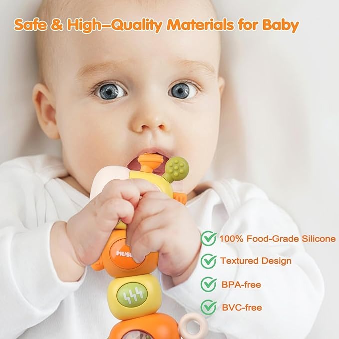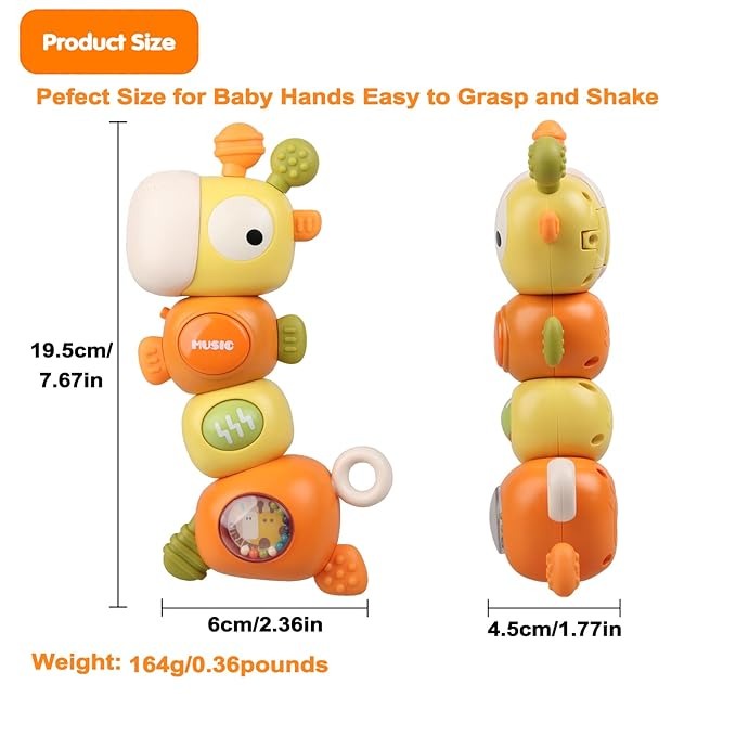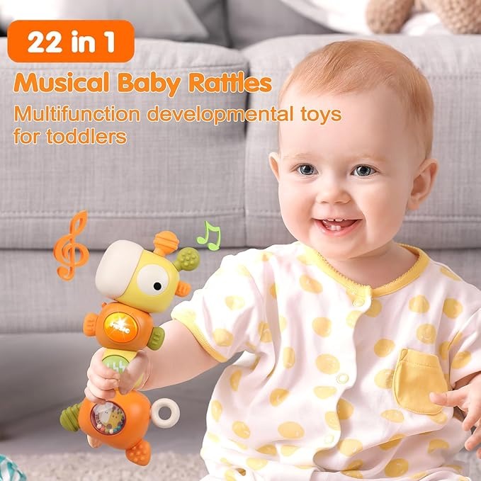 خشخيشة الزرافة الذكية لعبة تعليمية آمنة مصممة خصيصًا للأطفال من عمر 3 شهور، بتساعد الطفل يكتشف الأصوات، الألوان، والحركة بطريقة ممتعة وآمنة.