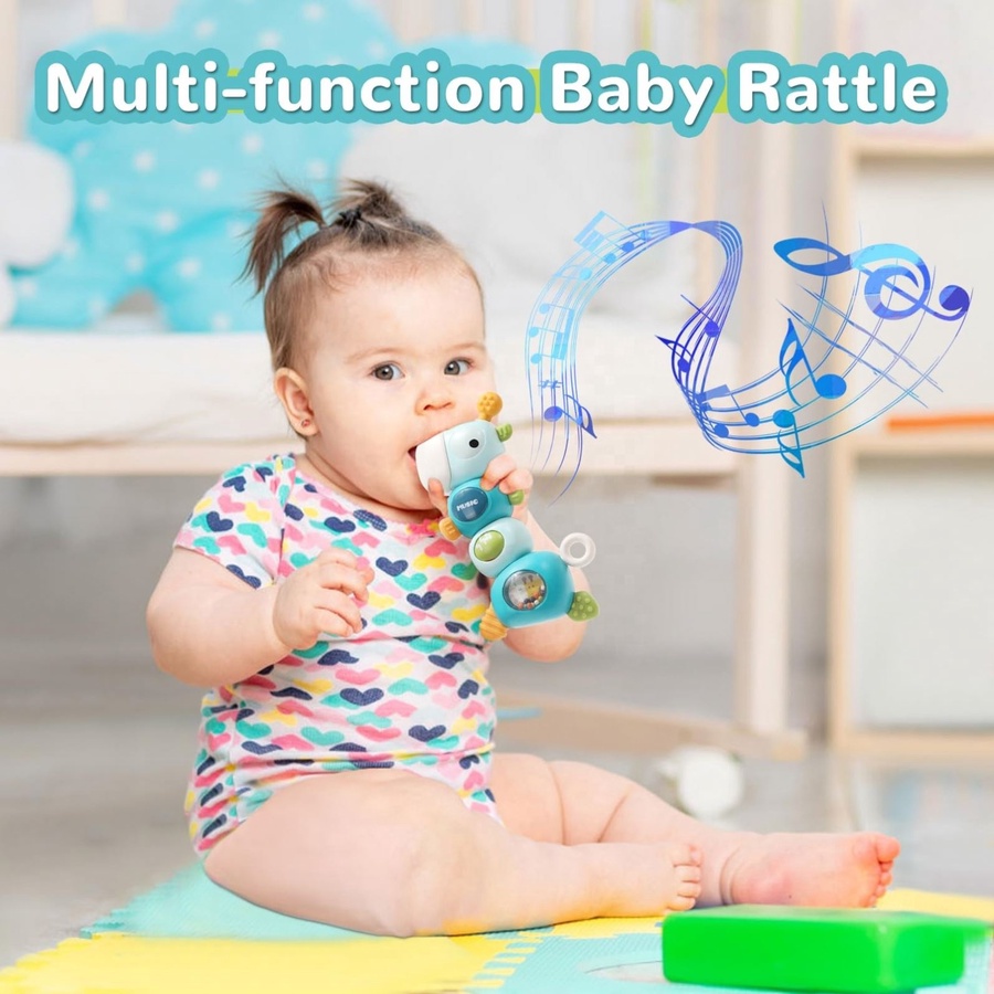 الطفل يمسك الخشخيشة بسهولة من الحلقات الجانبية
