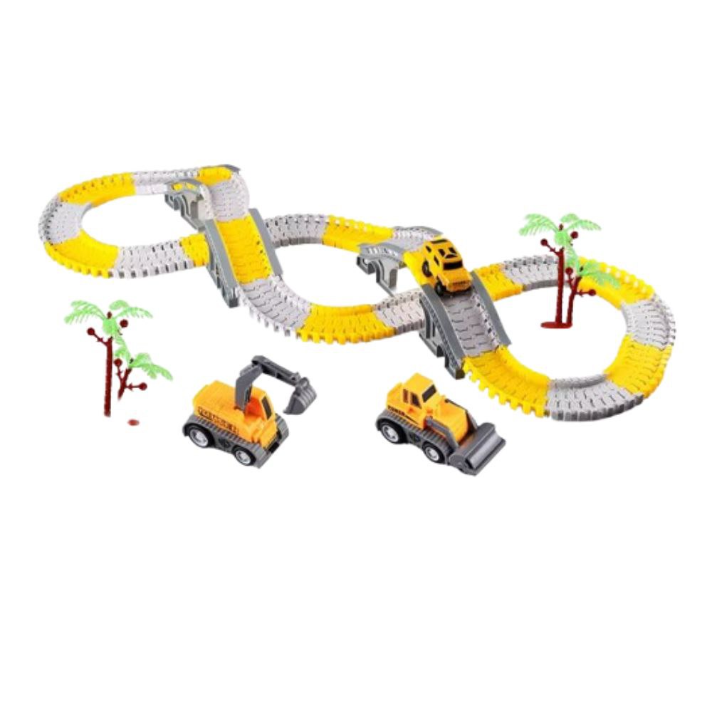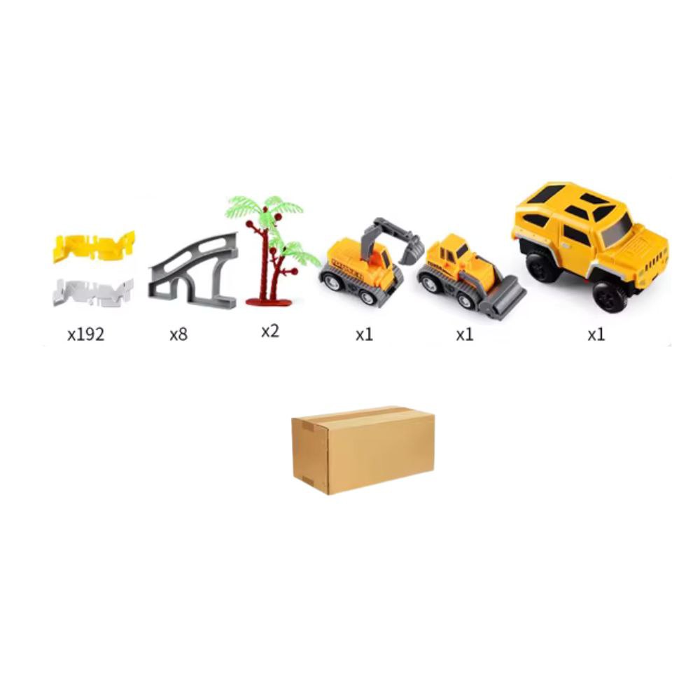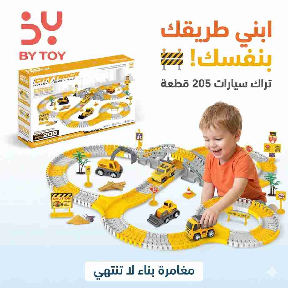 الطفل يركب الطريق بنفسه ويبني الجسور والمسارات، وكأنه مهندس صغير 👷♂️. اللعبة بتحتوي على عربيات هندسية مختلفة زي: حفار، خلاطة، شاحنة، وسيارة 4x4، وكمان مسارات مرنة وسهلة التركيب، وجسور ولافتات طريق.