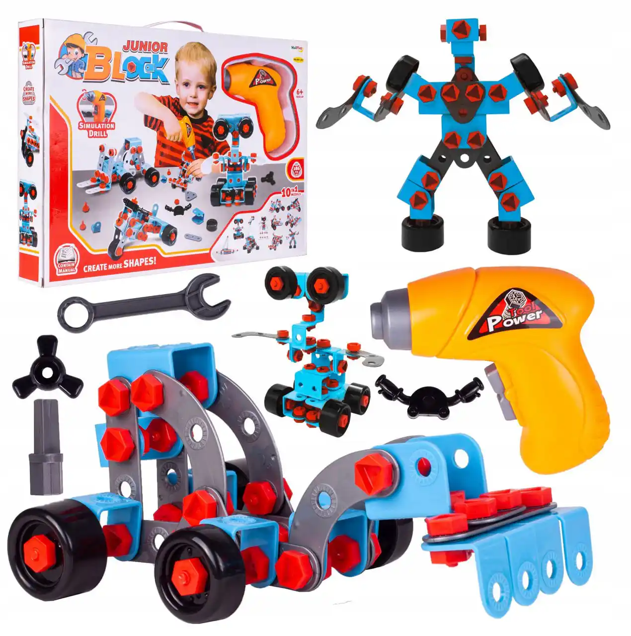🔧 شنطة ميكانو مع شنيور فك وربط للأطفال – Junior Block (10×1)