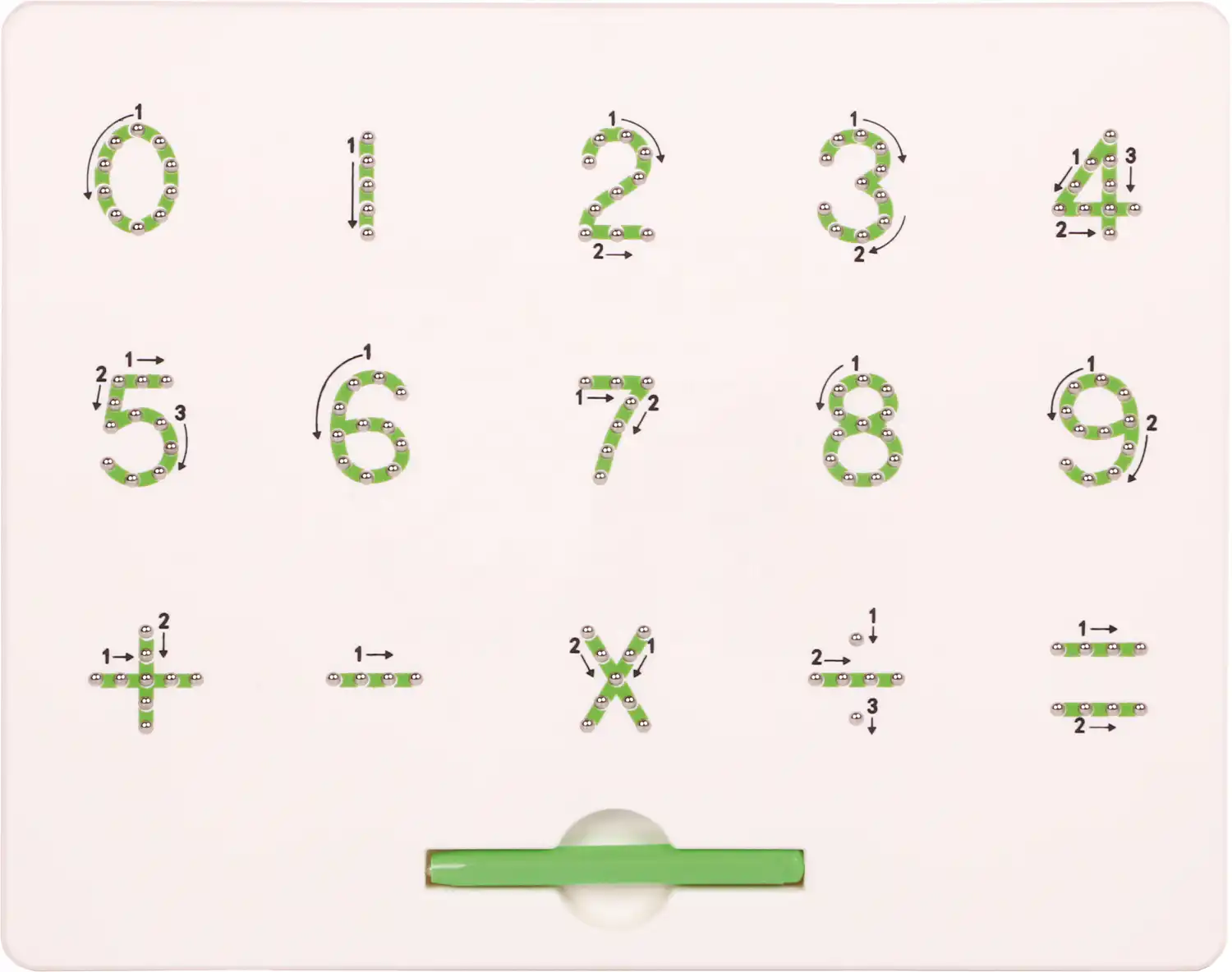 القلم المغناطيسي يرفع الكرات لتشكيل الحروف والأرقام بطريقة ممتعة وبصرية.