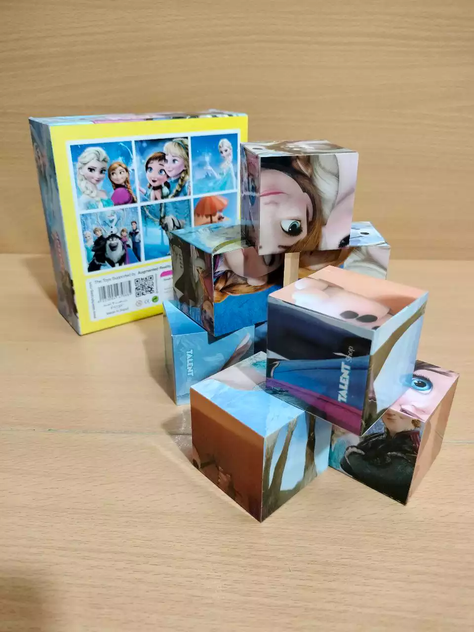 اللعبة تتكون من مكعبات وعلى الطفل ان يعيد ترتيبهم لتكوين الشكل الصحيح 😍