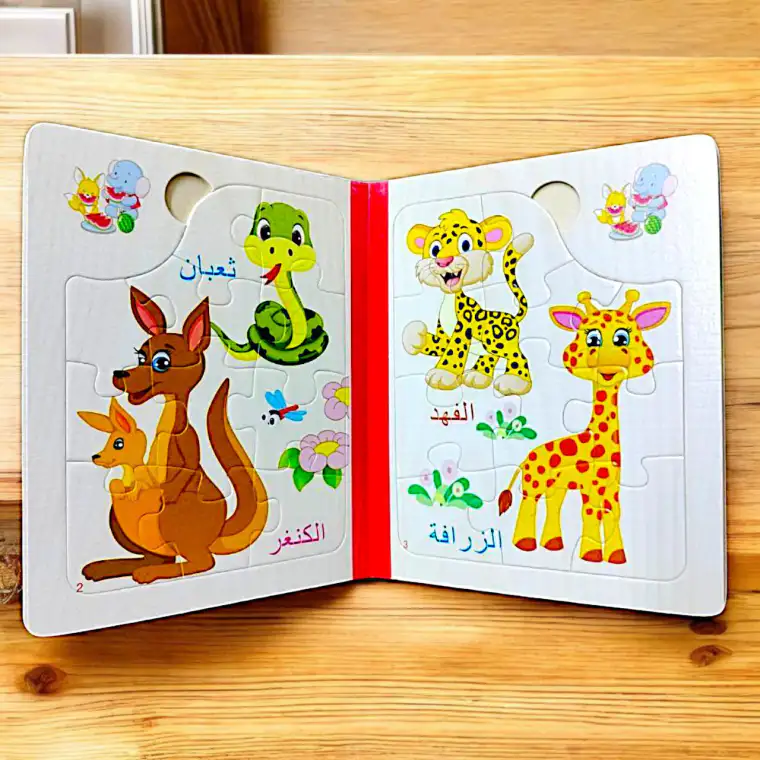 كتاب البازل الخشبي هو الرفيق المثالي لصغيرك، حيث يجمع بين التعليم والمتعة في آنٍ واحد! 🧩✨