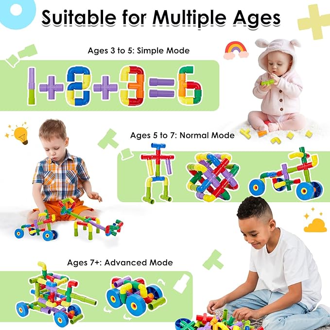 ✅ تنمية خيال بلا حدود: كل كيس بيطلع منه مئات الأشكال (بيوت، عجل، حيوانات، روبوتات، مجسمات هندسية).