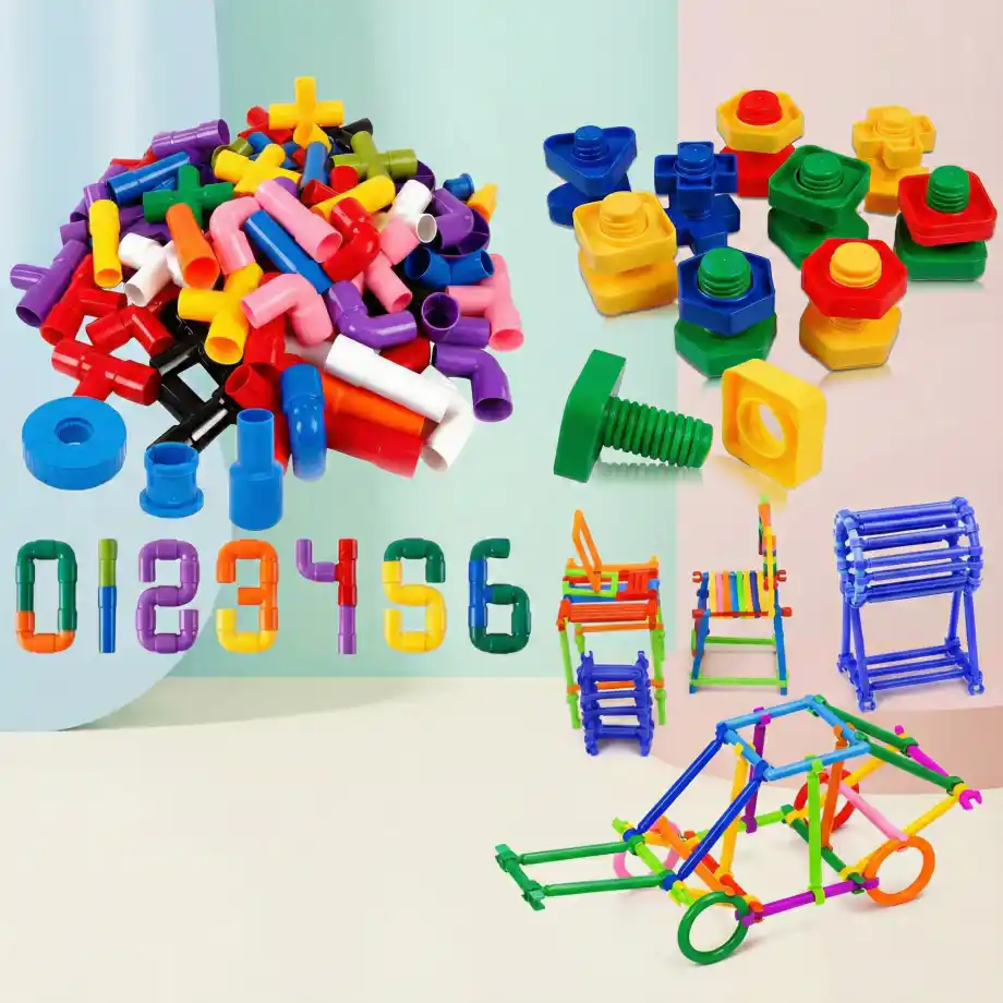 ✅ تنوع يناسب كل الأذواق: عندنا أشكال مختلفة (مواسير 🛁 - صواميل ومسامير 🔩 - أشكال هندسية متشابكة 🔺).